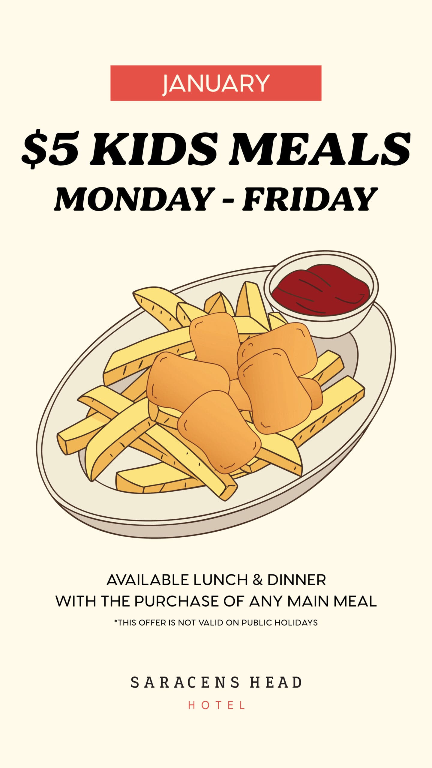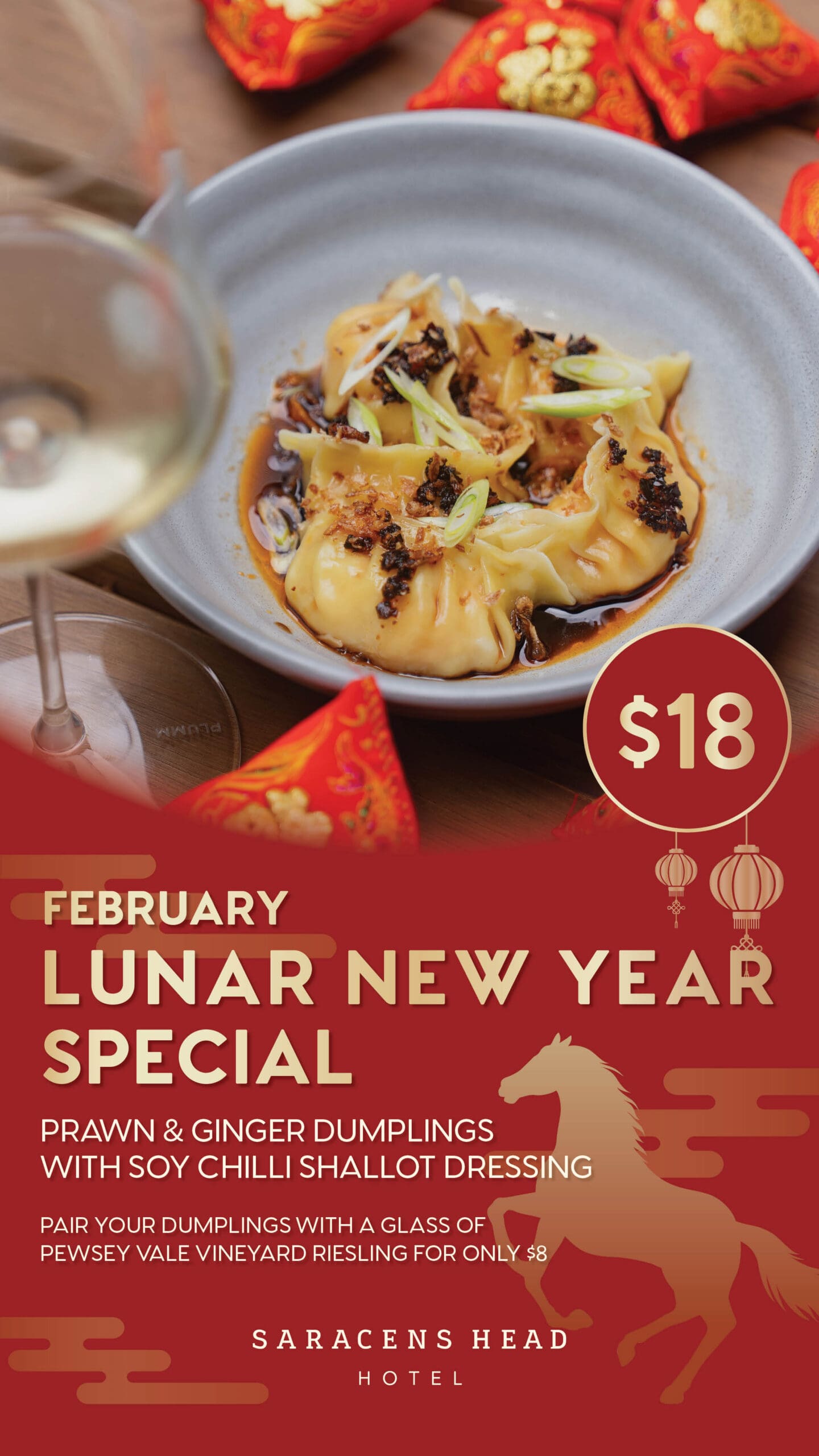Terms and conditions apply. Minimum of 40 guests required. Catering spend of $25 per person applies. Offer available at the Saracen’s Head Hotel for functions taking place between 01/01/26 – 28/02/26.